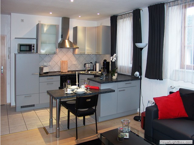 Die Ferienwohnung befindet sich im Erdgeschoß und ist modern und liebevoll eingerichtet. Sie verfügt über Wohnzimmer/Küche mit Essplatz, einem separaten Schlafzimmer und Bad mit Dusche. Im Bad ist ein großer Duschbereich mit Regendusche, Fußbodenheizung und Handtuchheizkörper. Bade- und Handtücher stellen wir Ihnen zur Verfügung.